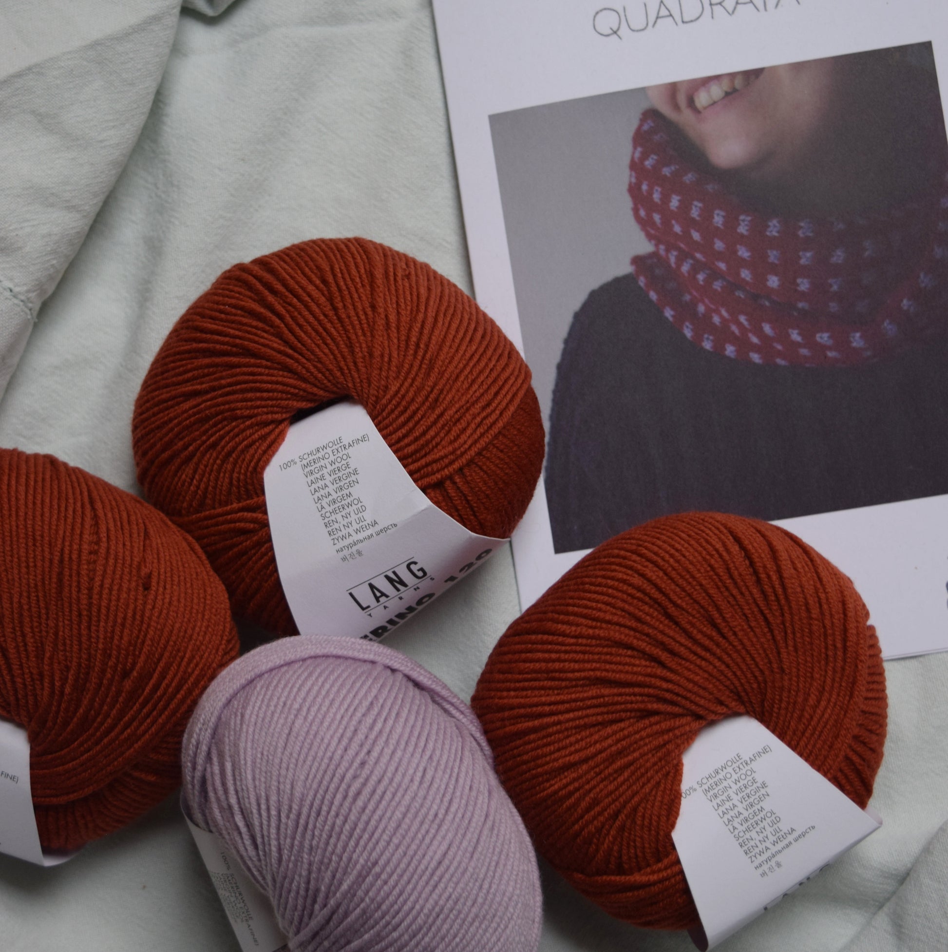 - 3 bolletjes Lang Yarns merino 120 kleur donker brick (187)