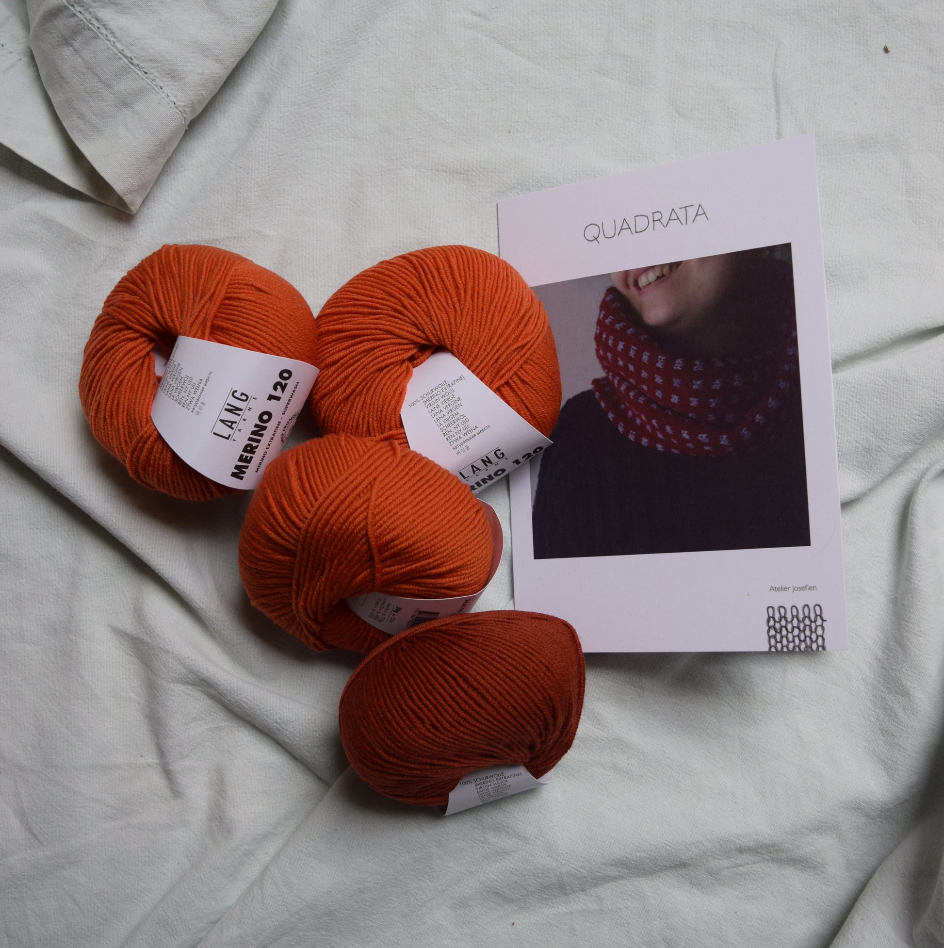 - 3 bolletjes Lang Yarns merino 120 kleur mandarijn (159)