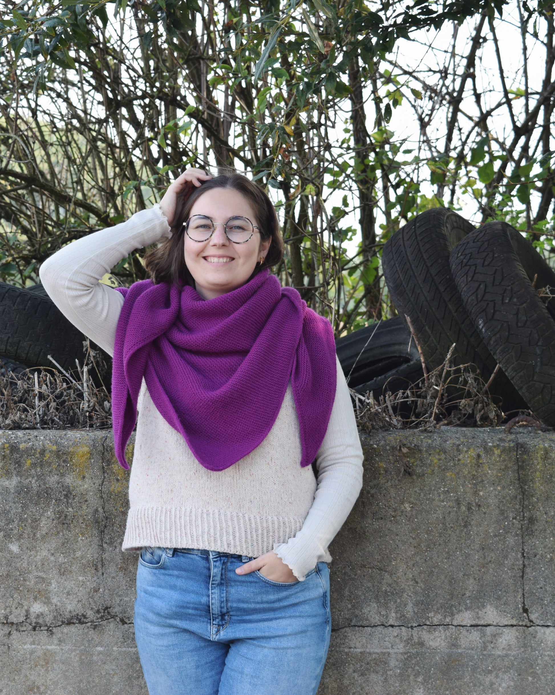 Je begint dit sjaaltje te breien vanuit één hoek. Door aan één kant steeds steken te meerderen, wordt het sjaaltje geleidelijk breder en krijgt het zijn kenmerkende driehoekige vorm. Zodra de gewenste grootte is bereikt, kant je af. Wil je de sjaal groter of kleiner maken? Dat kan eenvoudig door meer of minder meerderingen te breien.