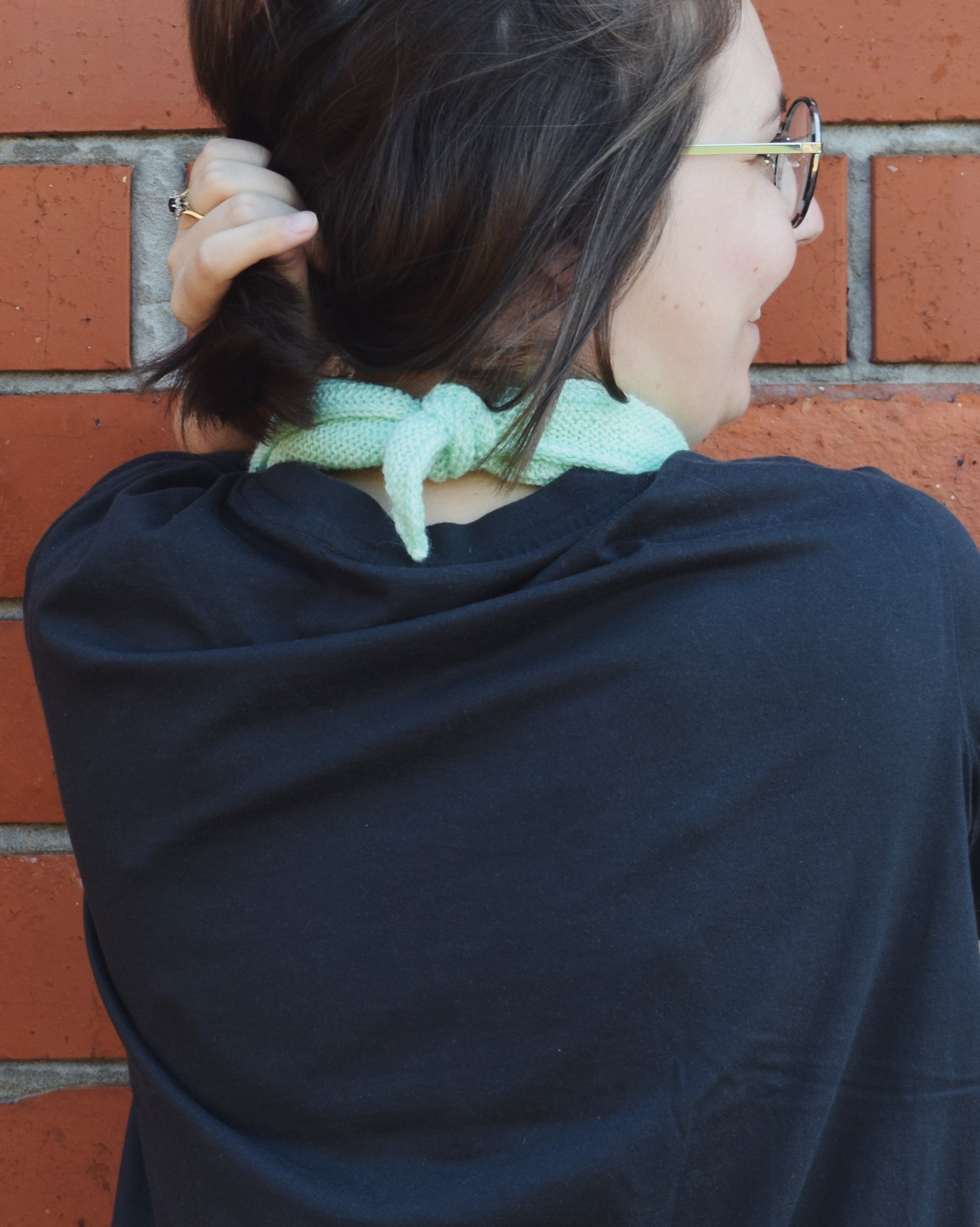 EMMA is een klein, driehoekig sjaaltje dat je losjes om je hals knoopt. De inspiratie hiervoor komt uit mijn eigen kindertijd: mijn moeder knoopte ons vaak zulke kleine katoenen sjaaltjes om. De naam EMMA is dan ook niet toevallig gekozen – het is de tweede naam van mijn moeder. Zo draagt dit ontwerp ook een stukje van haar met zich mee.