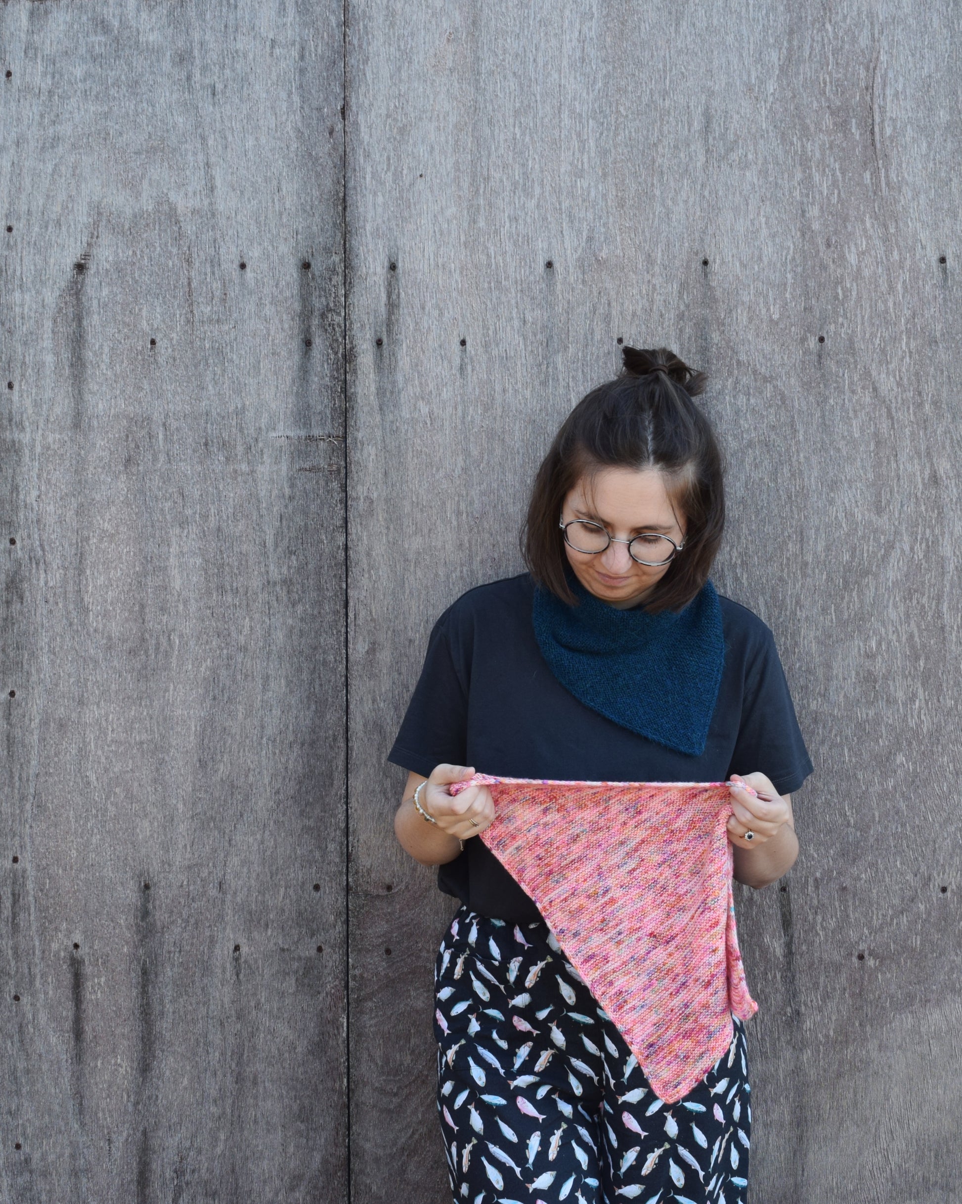 Je begint dit sjaaltje te breien vanuit één hoek. Door aan één kant steeds steken te meerderen, wordt het sjaaltje geleidelijk breder en krijgt het zijn kenmerkende driehoekige vorm. Zodra de gewenste grootte is bereikt, kant je af. Wil je de sjaal groter of kleiner maken? Dat kan eenvoudig door meer of minder meerderingen te breien.
