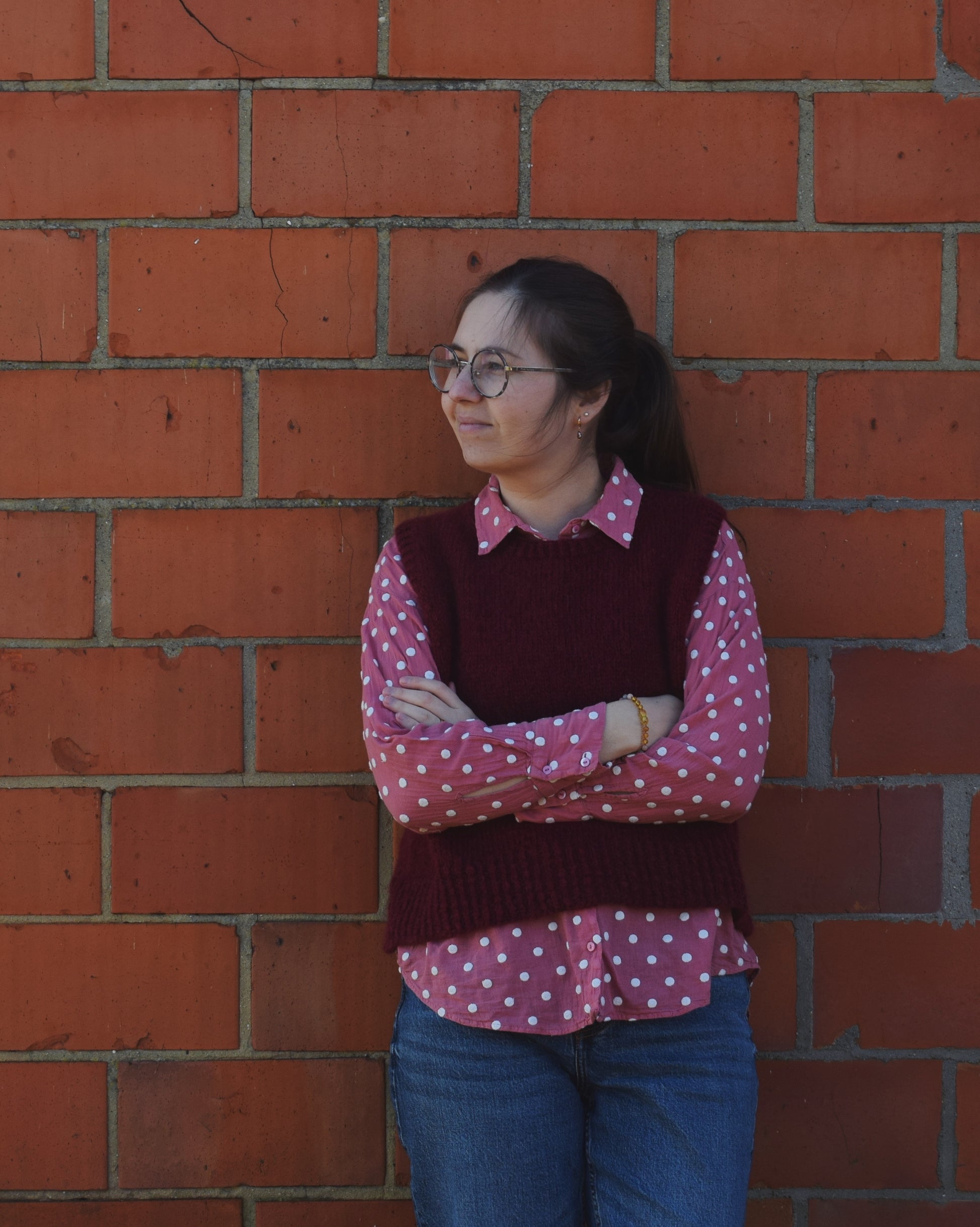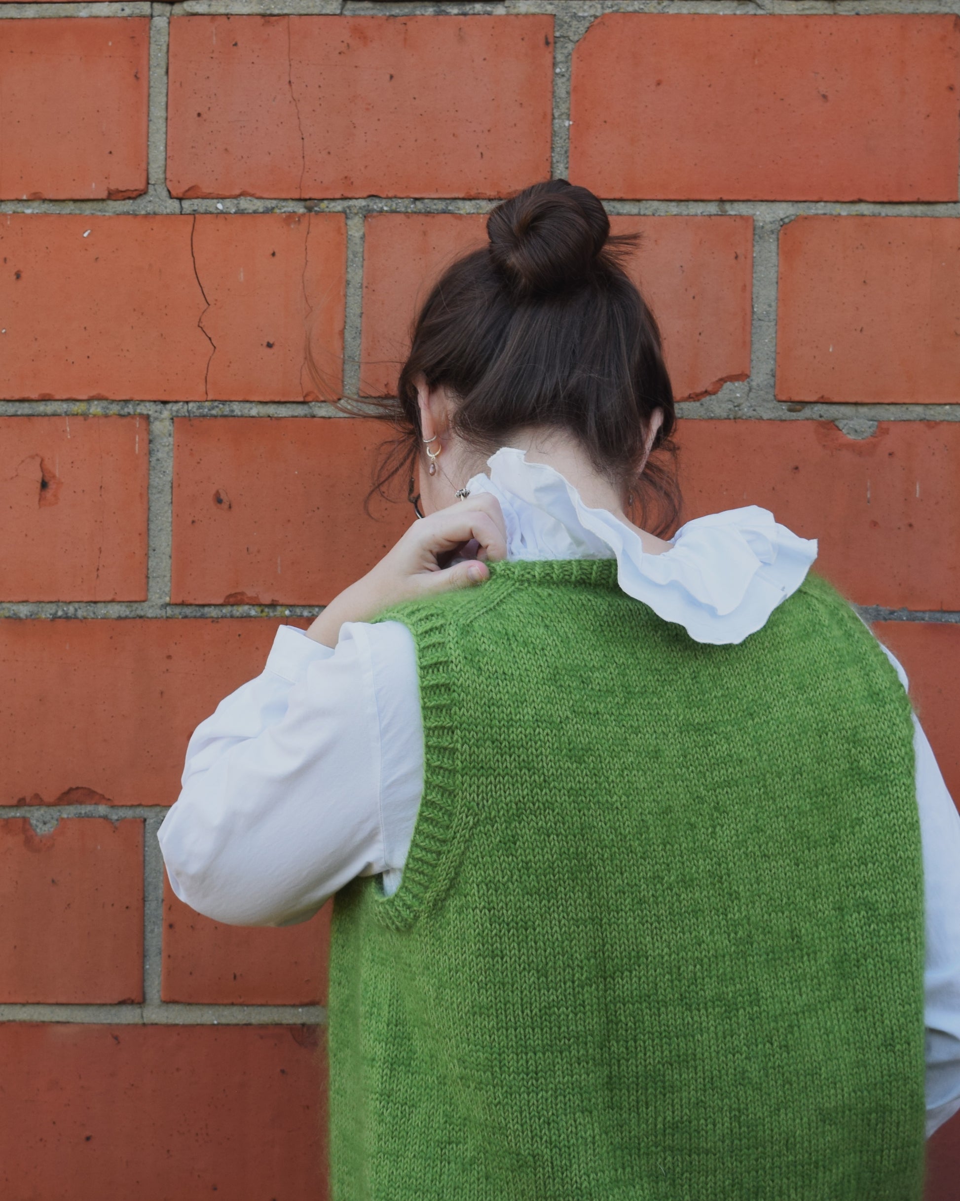 FNUG means ‘fluff’ in Danish. The name was chosen because I was craving a fluffy design – something that feels light, yet forms a warm layer. A slipover that fits perfectly over a blouse, suitable for all seasons of the year.