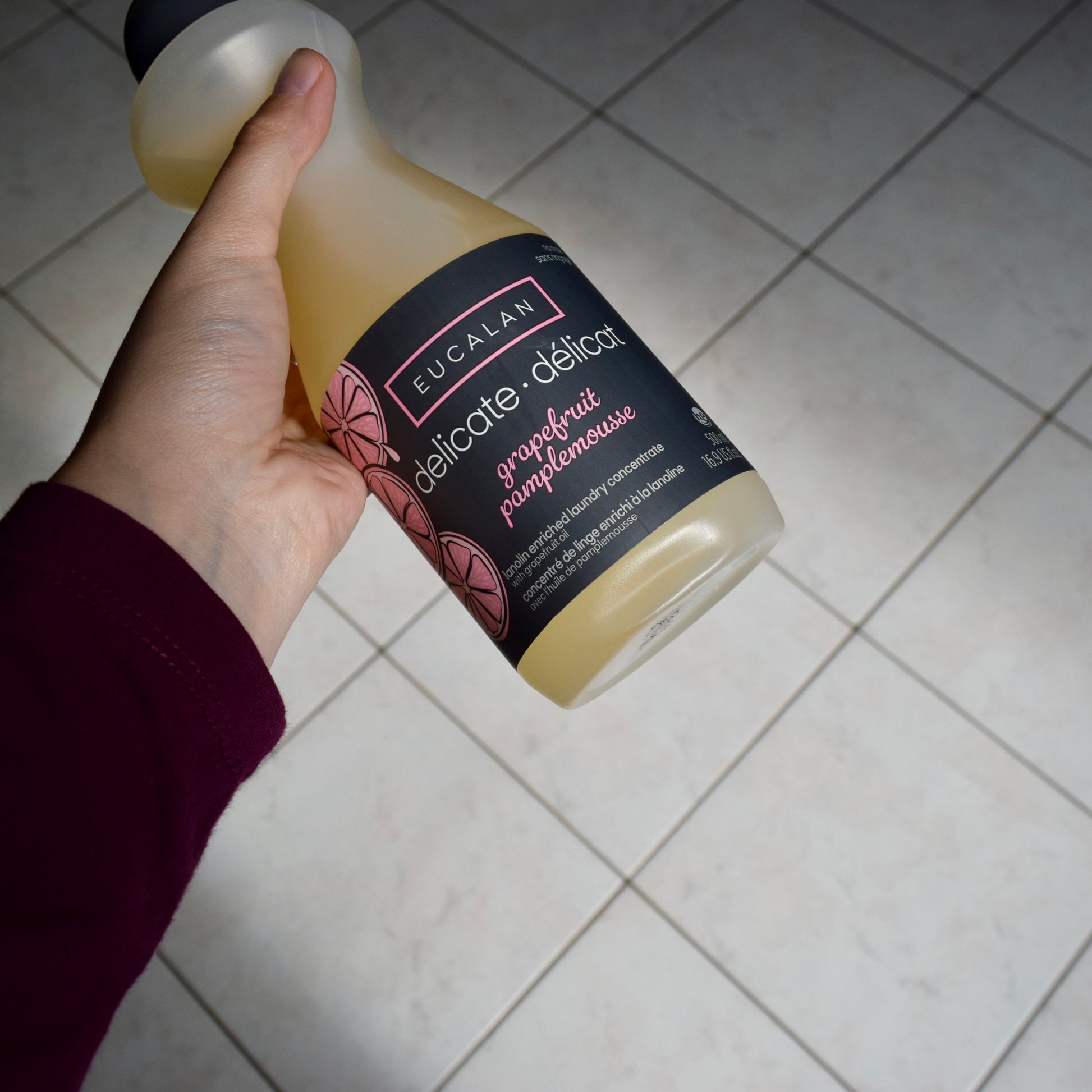 kneusje: eucalan wolwasmiddel - 500ml - geur pompelmoes - geblutste fles