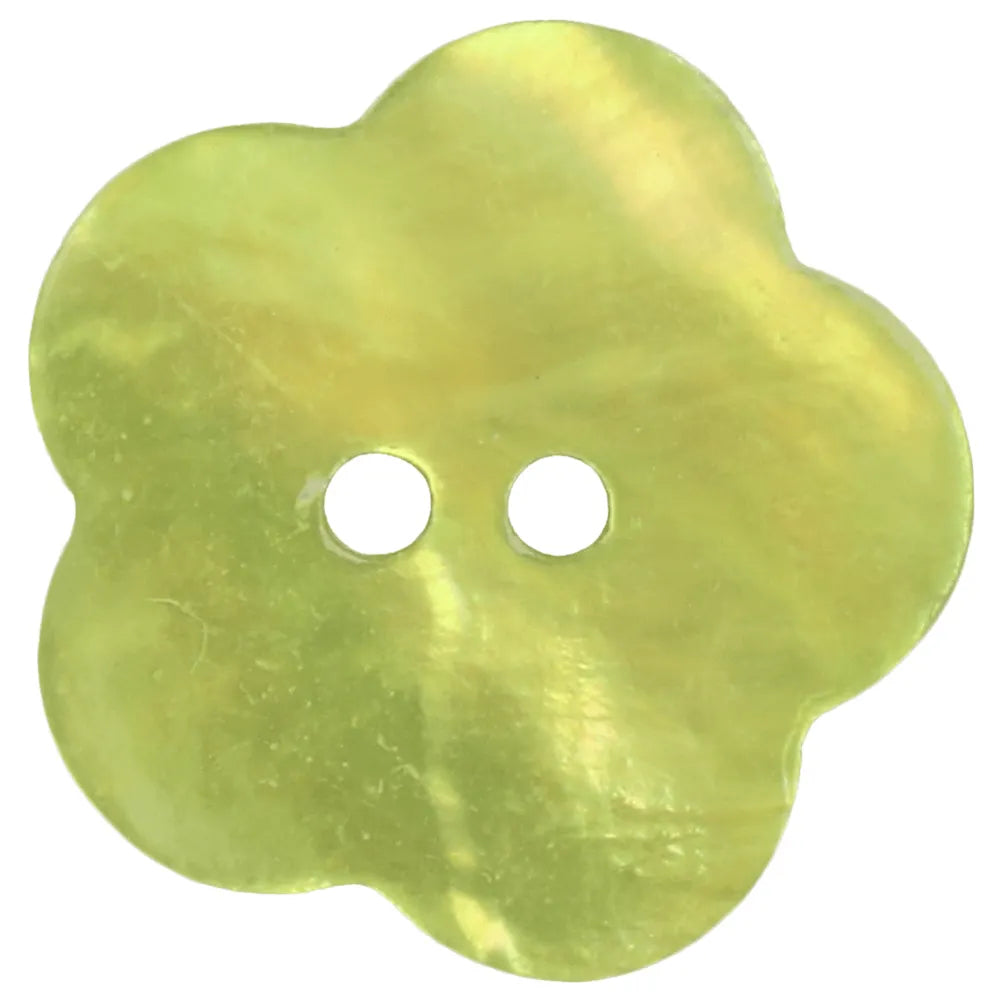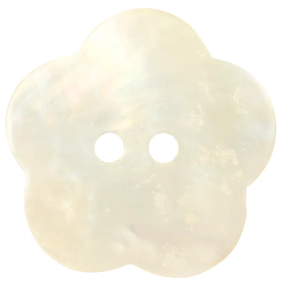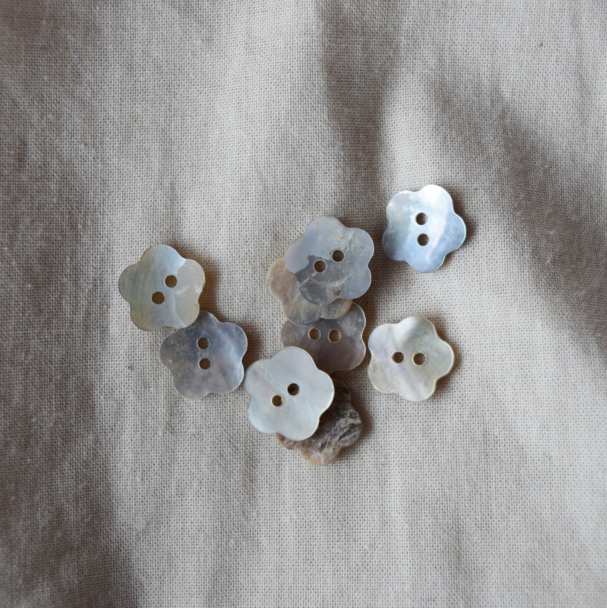 Parelmoeren, bloemvormige knoop. Elegantie en vrolijkheid gaan prima samen! :-)