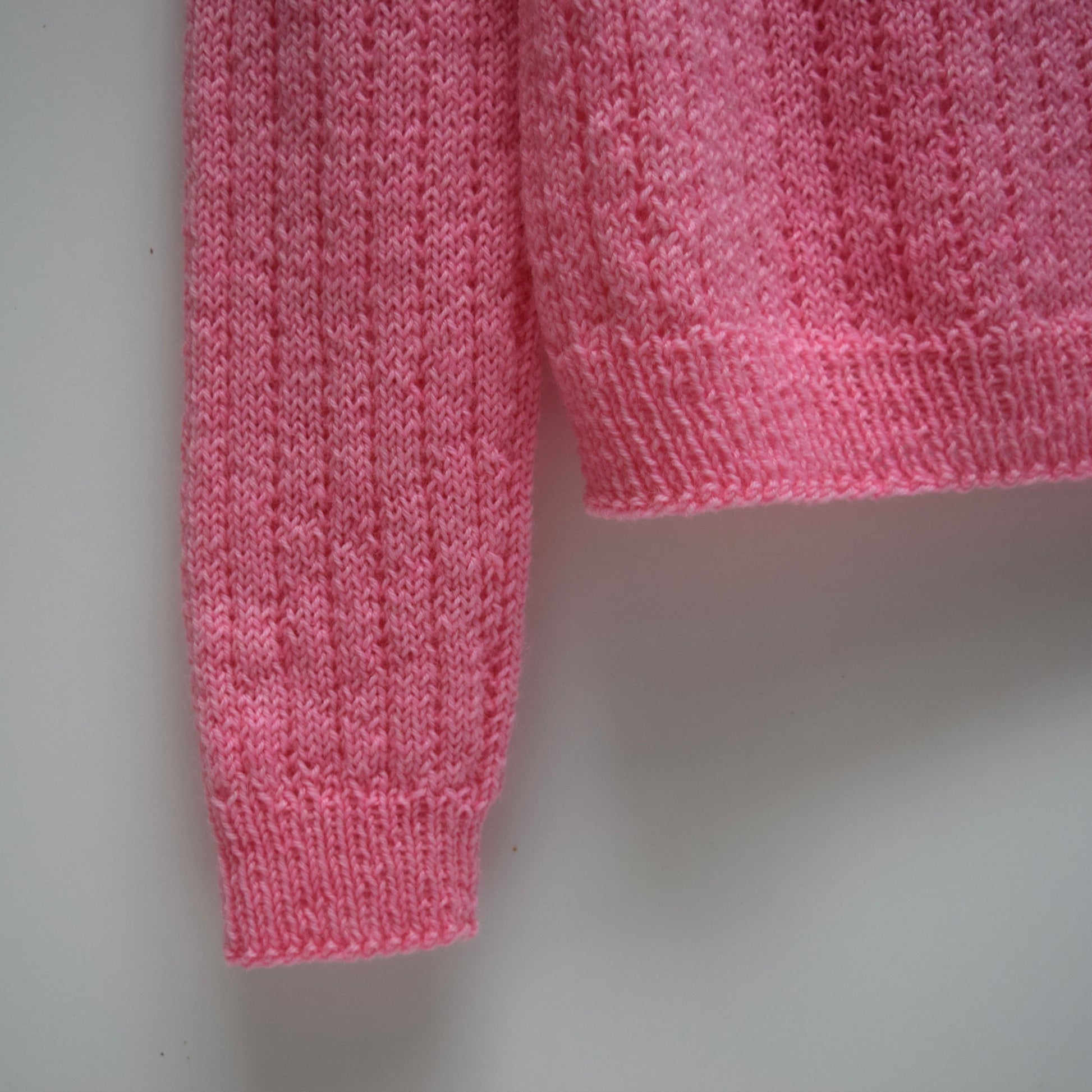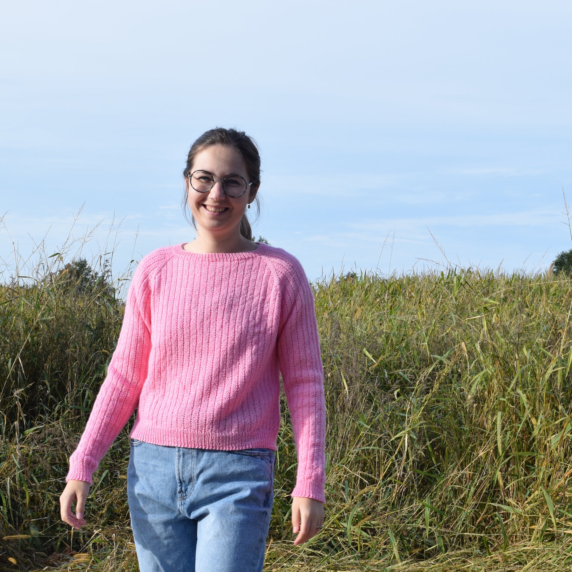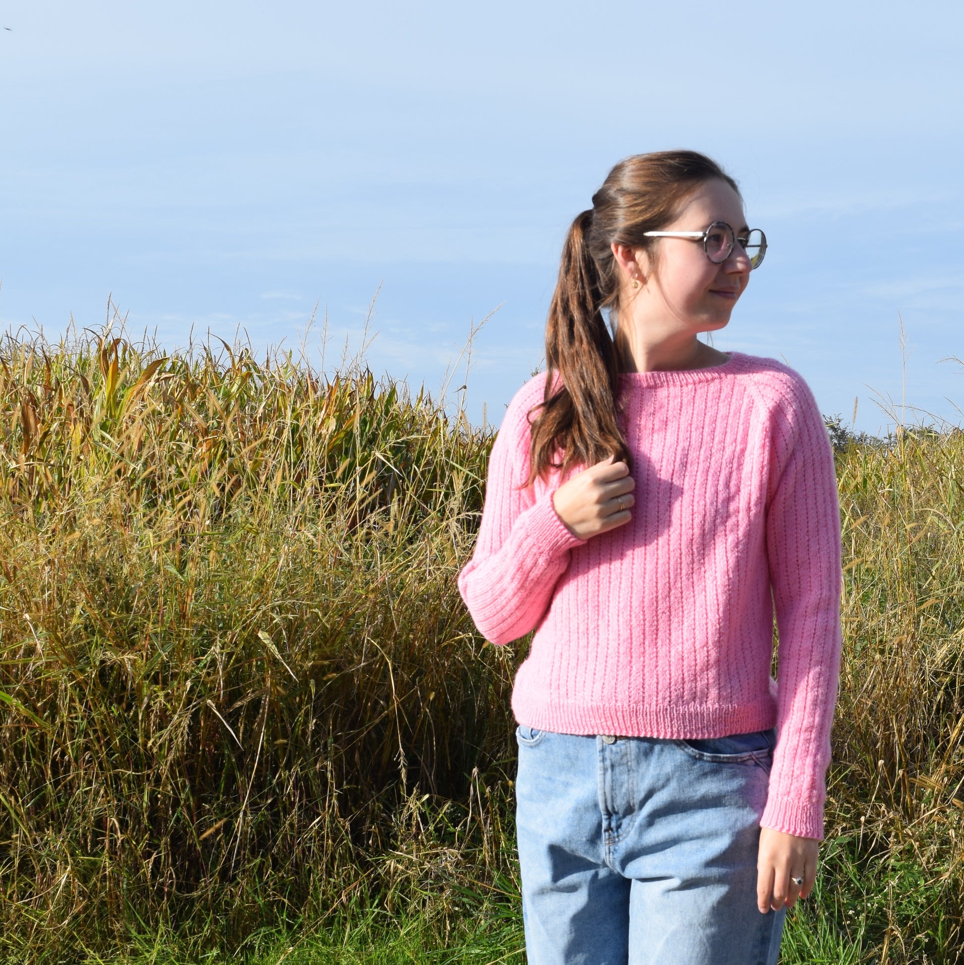 The MOSI pullover is knitted in the round on a circular needle from top to bottom. To shape the yoke, short rows and raglan increases are used. The sleeves are worked in the round.