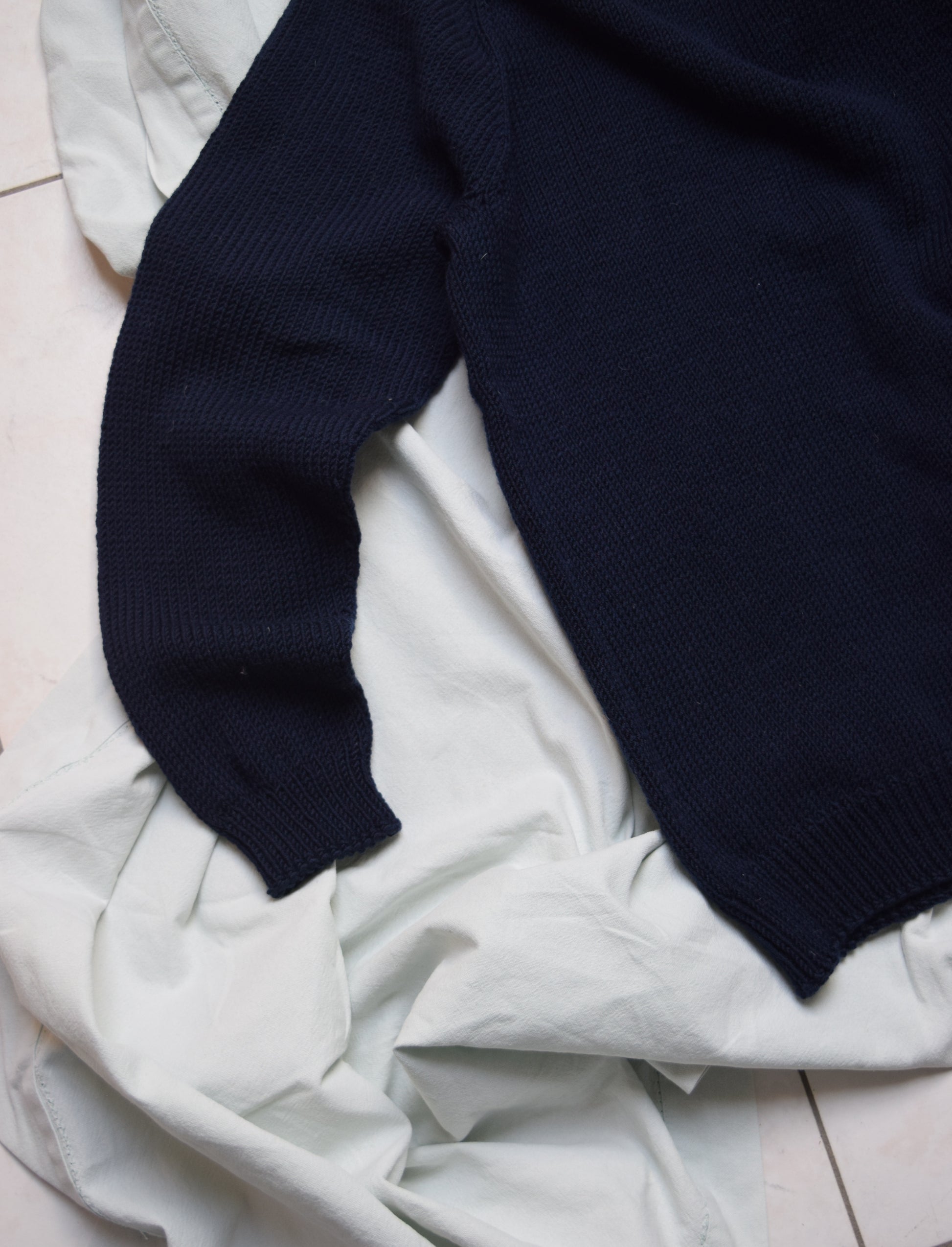 De MAKLIK man trui wordt van boven naar onder in het rond gebreid op een rondbreinaald. Om de pas te vormen wordt er gebruik gemaakt van verkorte toeren en raglan-meerderingen. De mouwen worden eveneens in het rond gebreid.