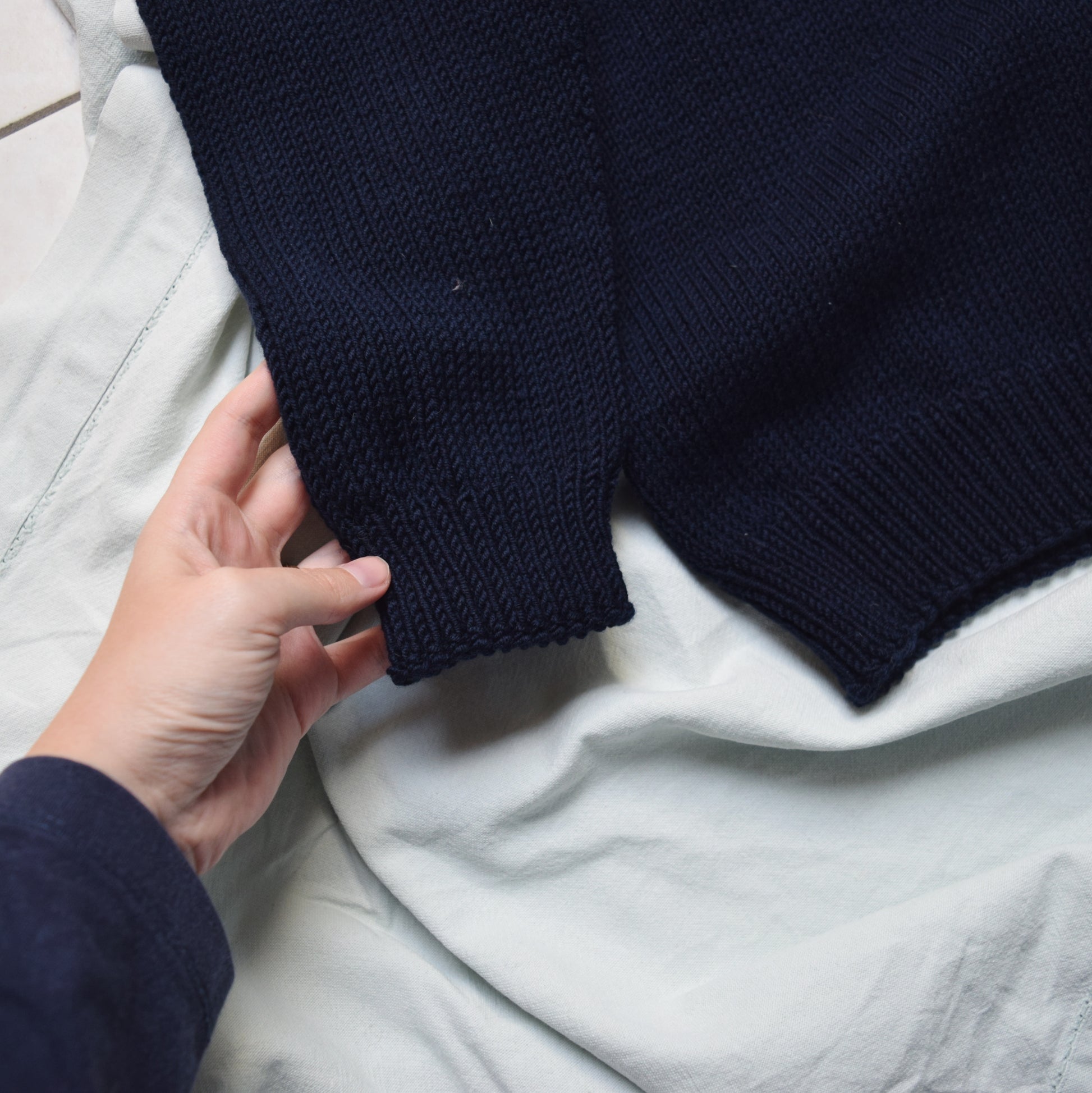De borstomvang van de afgewerkte trui meet ongeveer 87,5 (93,5, 98, 103) 108,5 [113,5, 119, 128] 138 (148,5, 159, 168,5) cm. De trui is ontworpen met 8 - 9 cm ‘positive ease’. Dit betekent dat de borstomvang van de trui 8 - 9 cm ruimer is dan jouw eigen borstomvang, om een lossere pasvorm en bewegingsruimte te creëren.