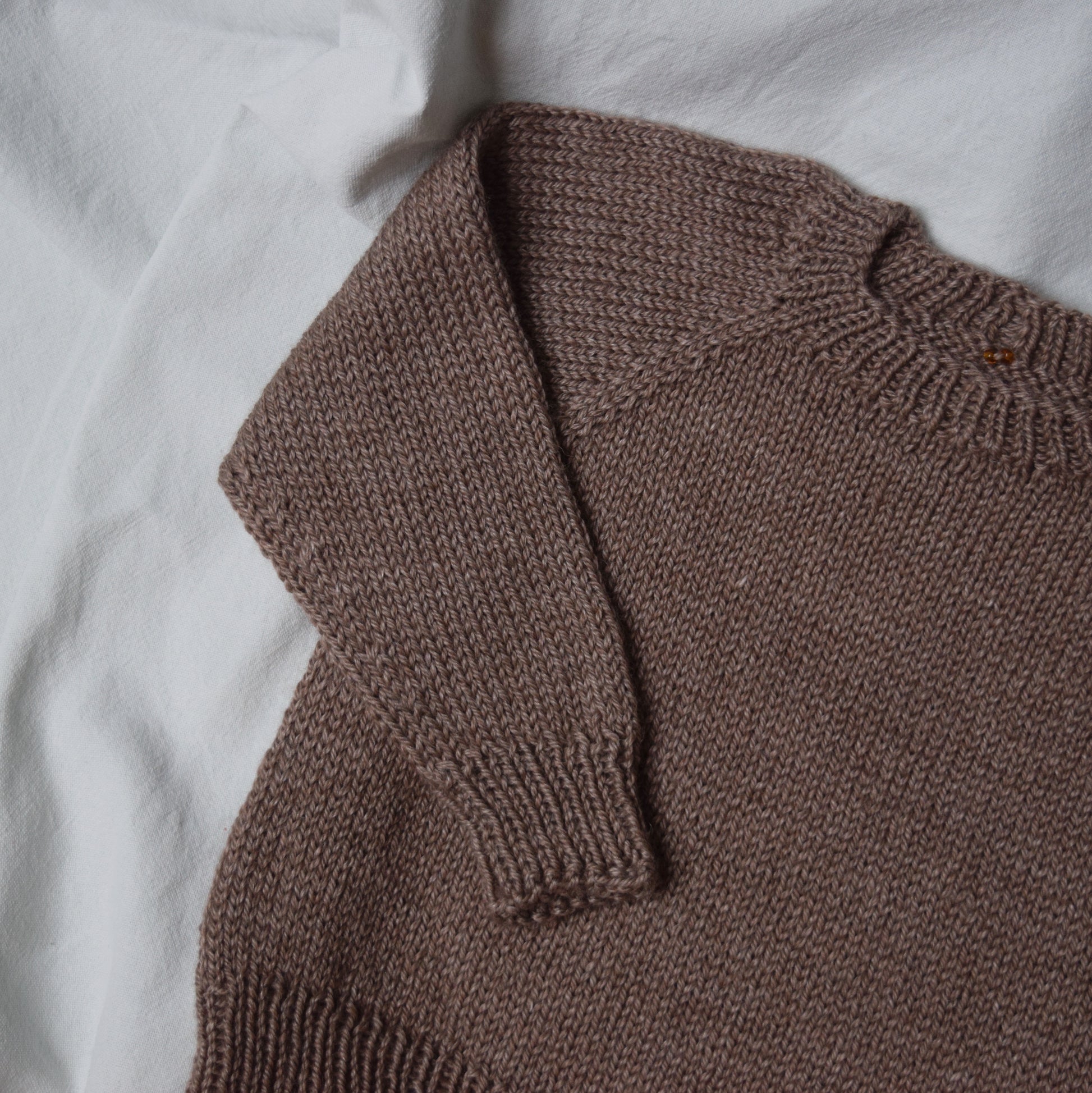 The MAKLIK mini pullover is knitted from top to bottom in the round on a circular knitting needle. Short rows and raglan increases are used to form the yoke. The sleeves are also knitted in the round.