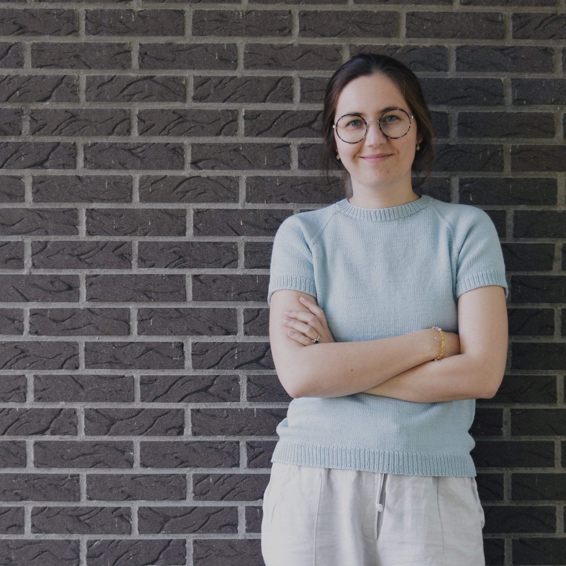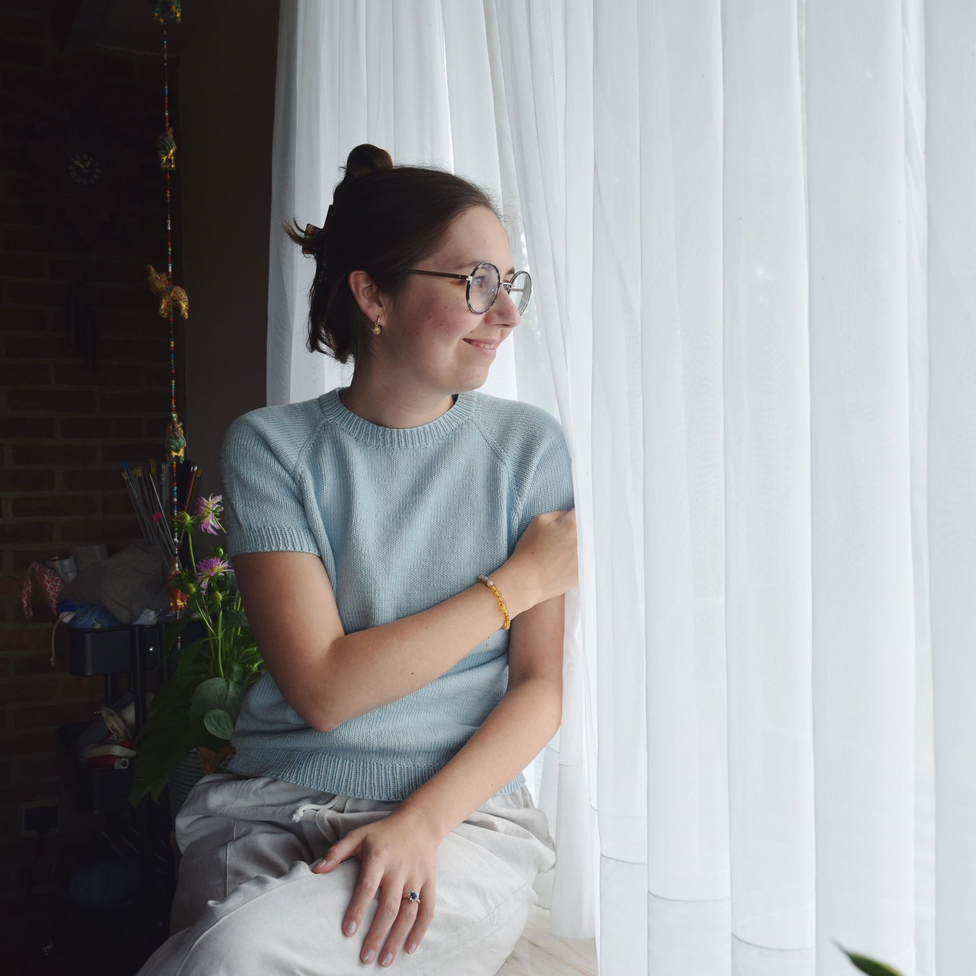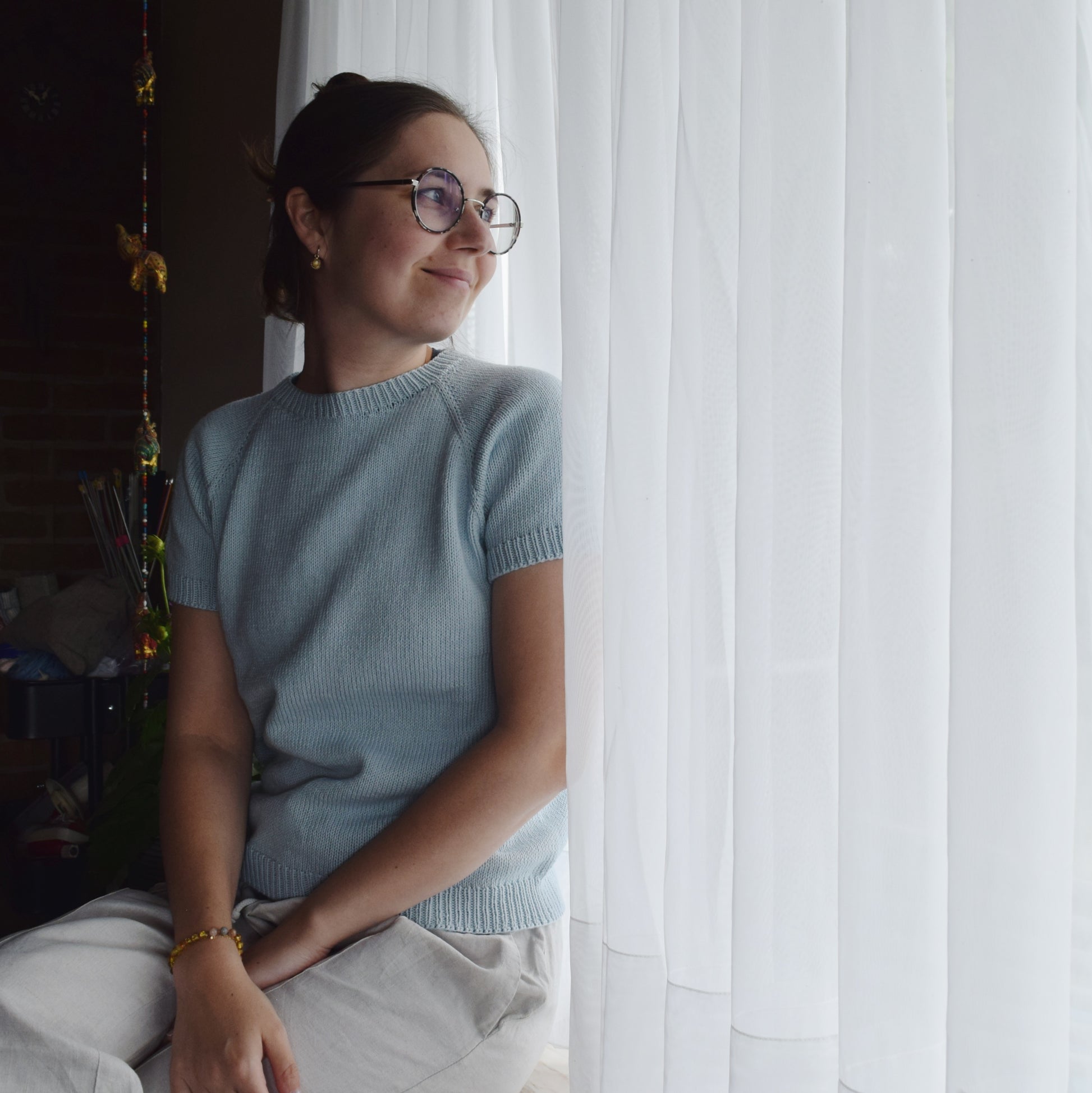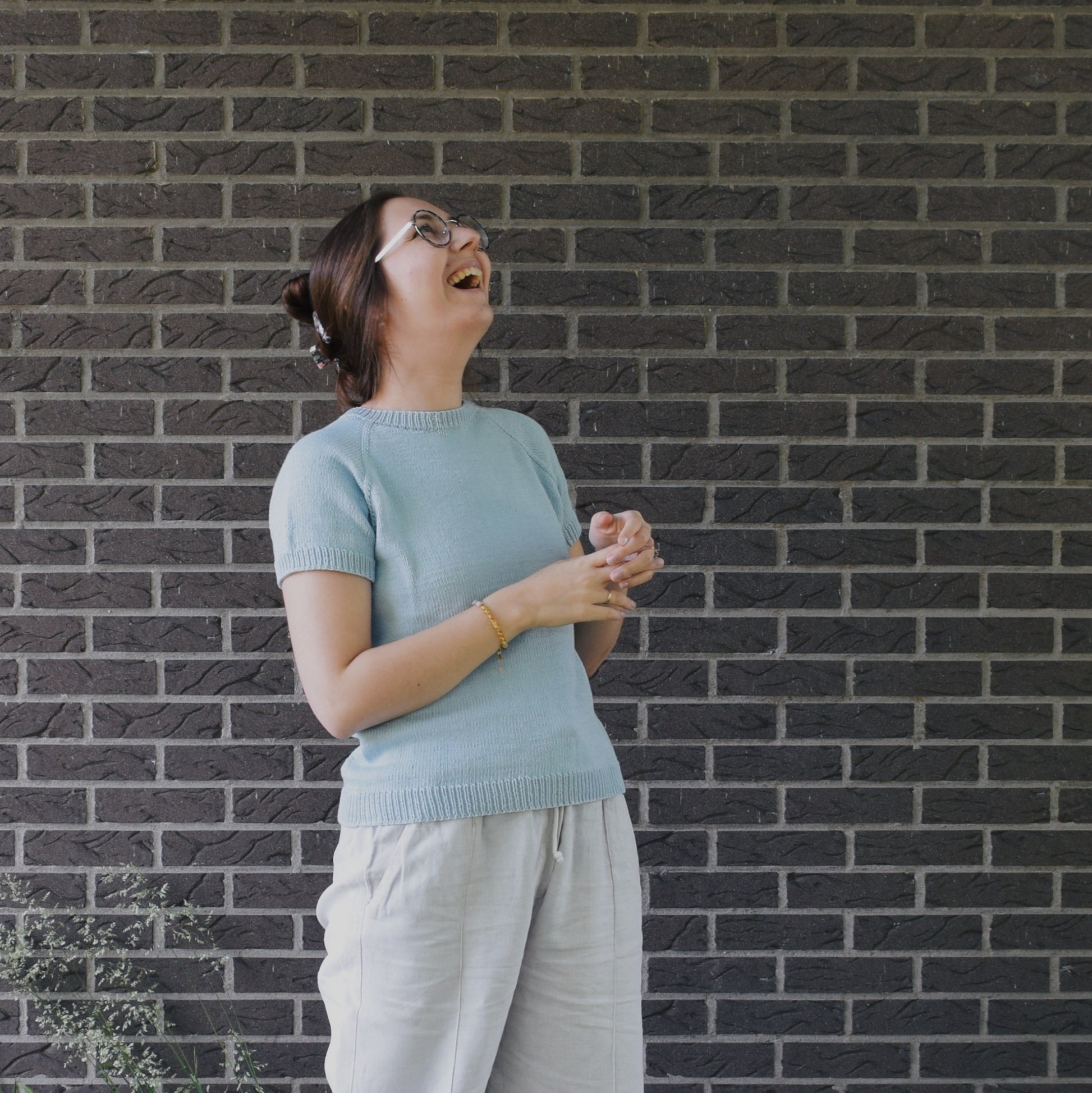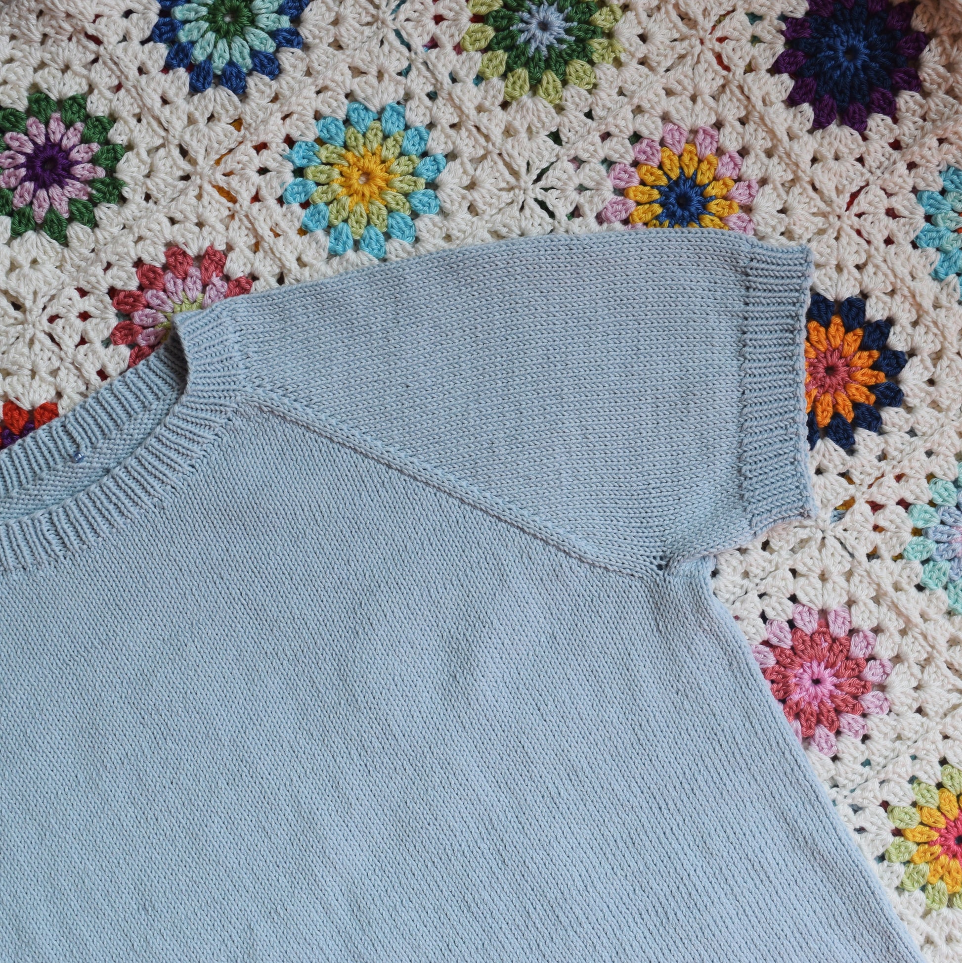 Het MAKLIK shirt wordt van boven naar onder in het rond gebreid op een rondbreinaald. Om de pas te vormen wordt er gebruik gemaakt van verkorte toeren en raglan-meerderingen. De mouwen worden eveneens in het rond gebreid.